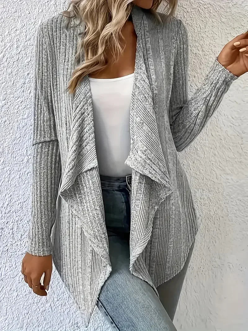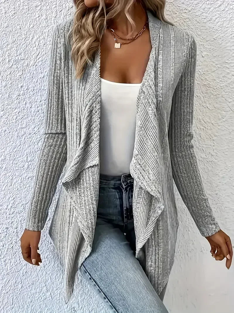 Crafted with a soft ribbed fabric, this solid colour cardigan features a loose, relaxed fit that drapes beautifully over any outfit. The long sleeves and open-front design make it a versatile wardrobe staple — pair it with jeans, leggings, or a dress for an instant style upgrade.